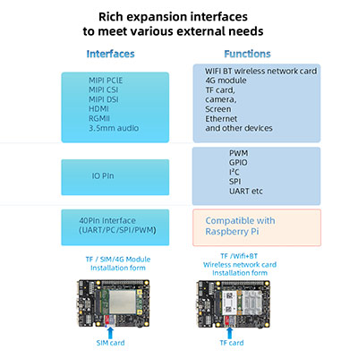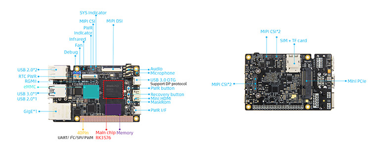 Porta Ethernet de Gigabit, rgmii, USB3.0/2.0, mini PCLE, mini HDMI, tela MIPI e câmera MIPI e outras interfaces periféricas, liderando 40 pinos de pinos não utilizados, ricas interfaces de expansão para atender a mais necessidades de desenvolvimento!
